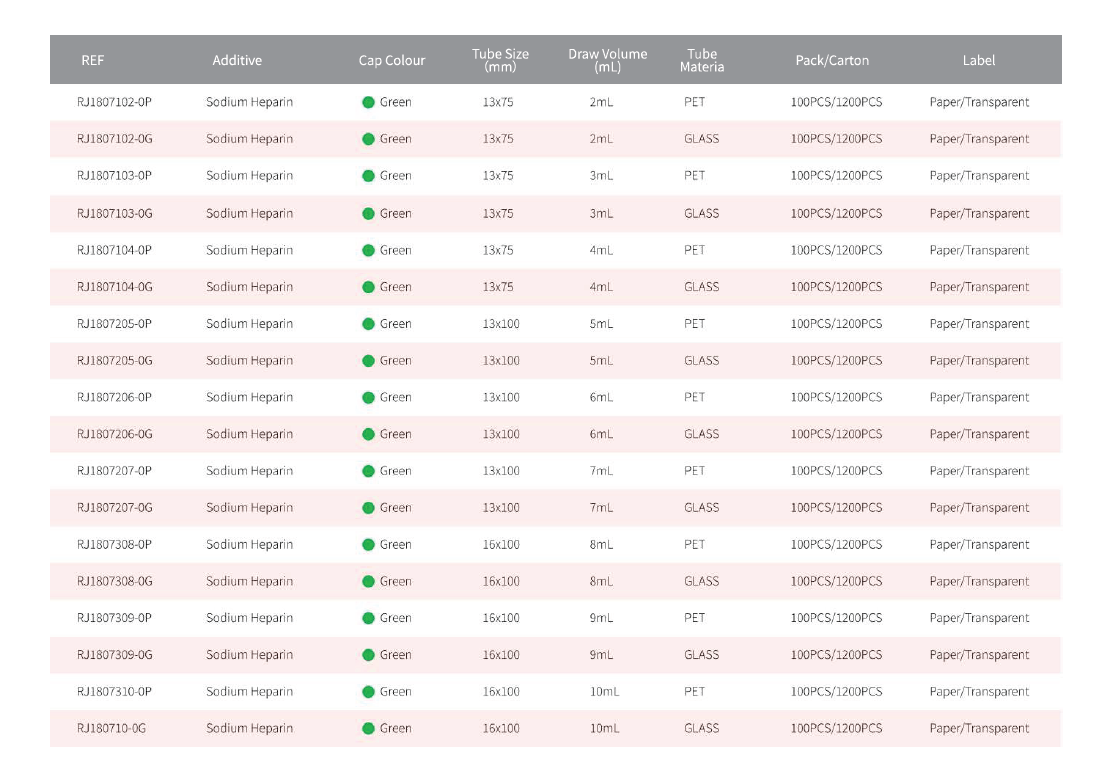 Heparin Blood Collection Tubes are intended to be used for analysis ofblood withdrawn from patients under anticoagulant therapy.